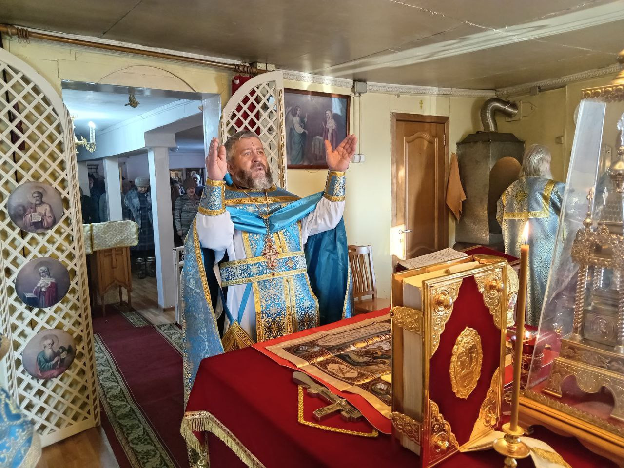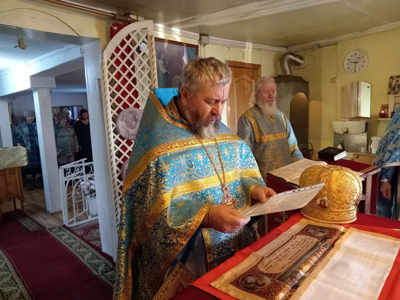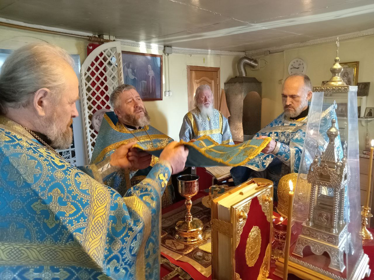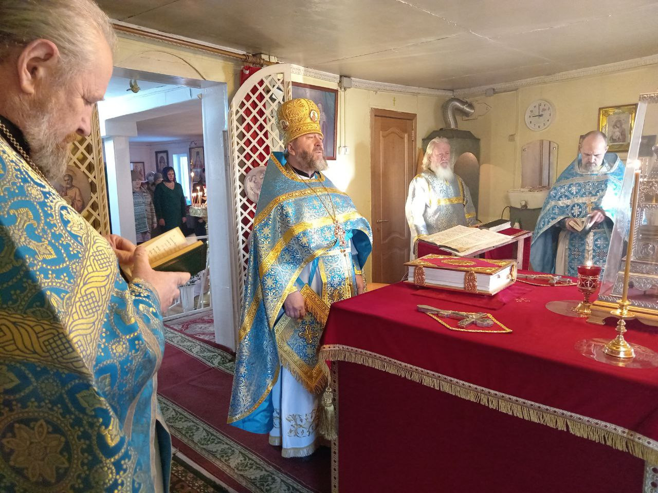 Богослужение по благословению епископа Нерчинского и Краснокаменского Макария совершили: настоятель Успенского храма п. Усть-Нера (Якутская епархия) протоирей Феодор Никитюк; настоятель храма великомученицы Варвары пгт. Давенда Могочинского района протоиерей Михаил Тарасюк; клирик храма Рождества Христова г. Могоча иерей Владимир Смирнов.