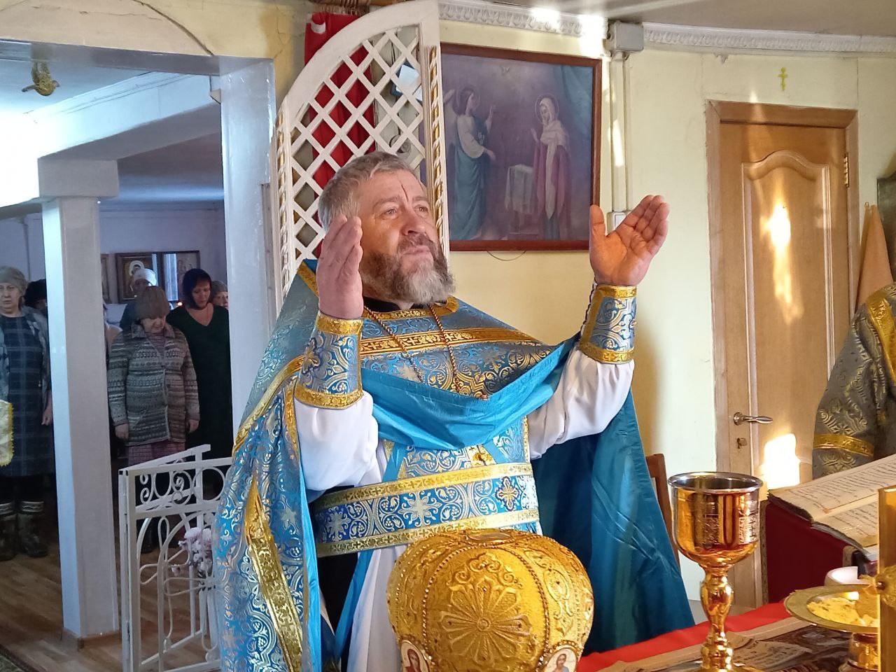 Затем священнослужитель обратился к верующим со словом проповеди о празднике Сретения Господня.