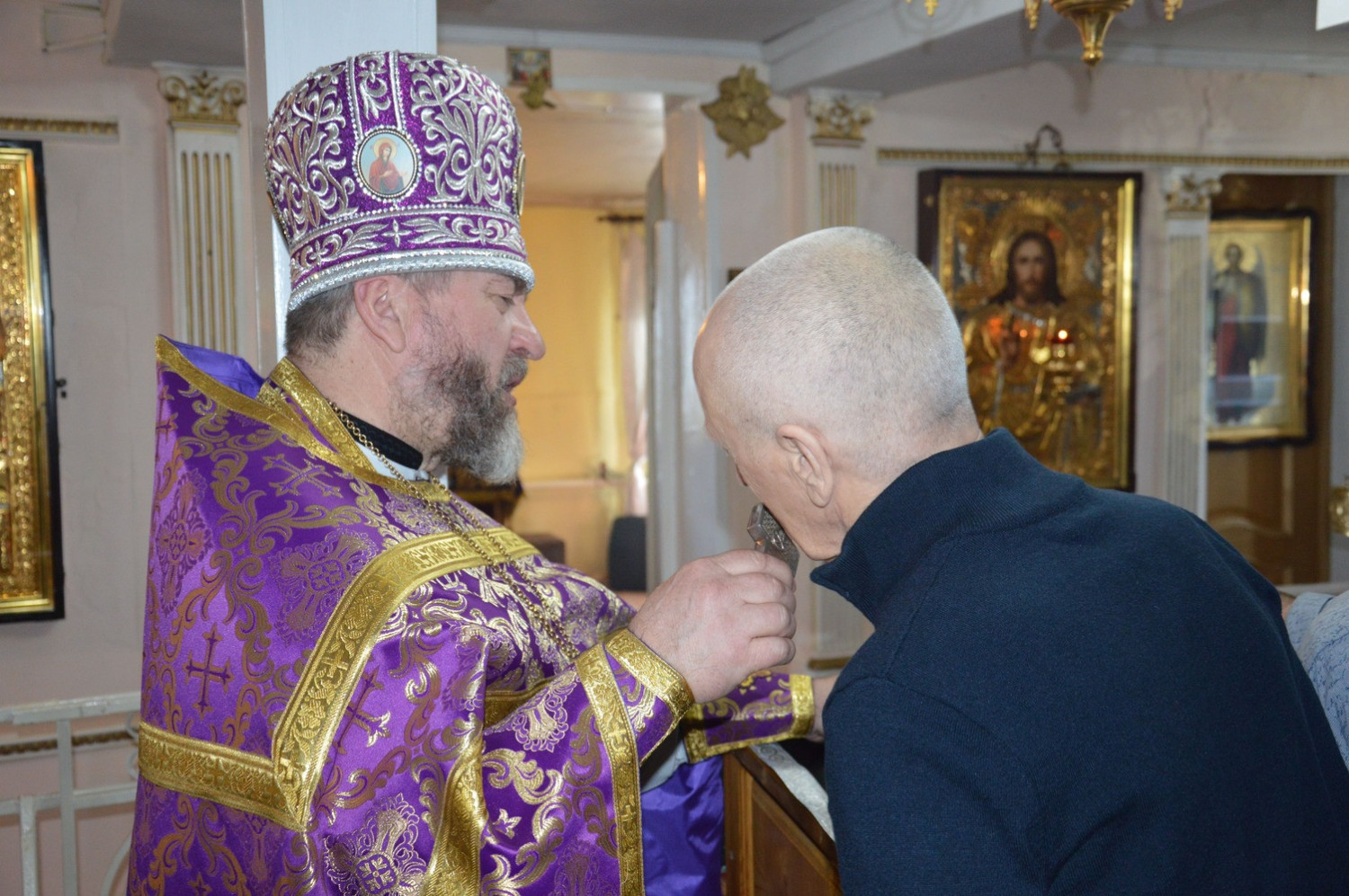 После проповеди настоятель храма благословил молящихся.